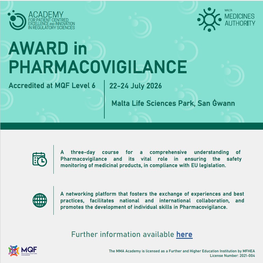 A three-day course for a comprehensive understanding of Pharmacovigilance and its vital role in ensuring the safety monitoring of medicinal products, in compliance with EU legislation. A networking platform that fosters the exchange of experiences and best practices, facilitates national and international collaboration, and promotes the development of individual skills in Pharmacovigilance. Further details available through the course information sheet.